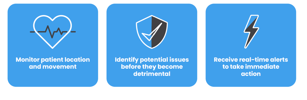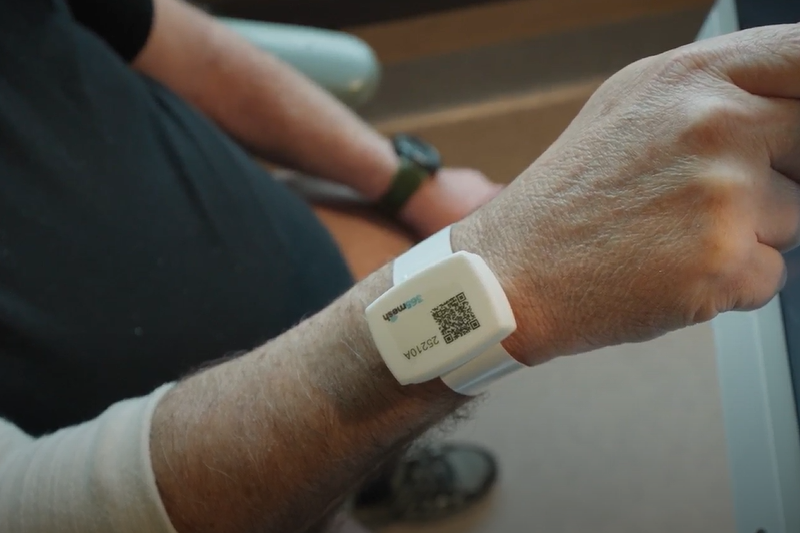 CareTrack, our lightweight wearable, is designed to attach to standard patient wristbands.
